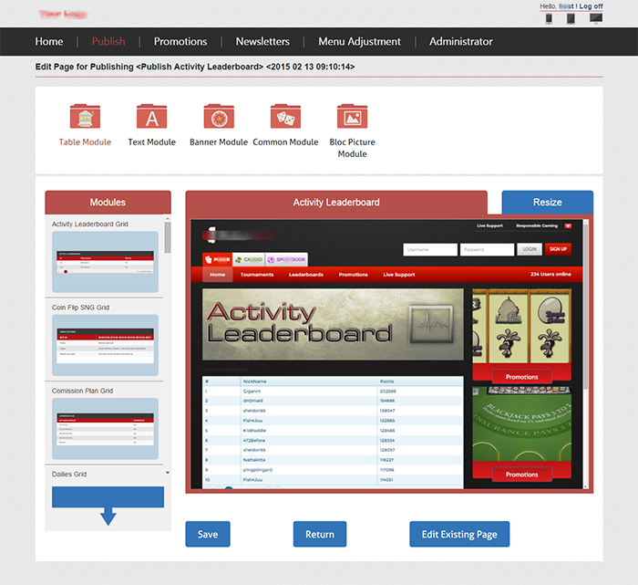 客戶是瑞典一家IT公司,項目主要目的為他們的合作伙伴提供在線賭博平臺。項目分為兩部分:一部分是后臺內容管理系統(tǒng),內容管理系統(tǒng)的作用主要是提供快速搭建站點,不同的合作伙伴可以根據(jù)自己的需要定制不同風格的站點,例如合作伙伴可以選擇有授權的賭博產品,選擇不同風格的網(wǎng)站模板,并提供所見即所得的編輯界面,用戶可以快速簡便的編輯網(wǎng)站內容;另一部分即平臺本身,主要功能包含在線玩游戲,用戶信息(個人檔案、游戲信息等)記錄,積分充值/兌換。